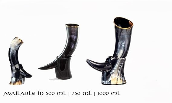 ? 100% AUTHENTIC VIKING FEEL: These special edition mugs are Hand Engraved & Flame Treated to give them a special look which makes them stand apart. Make this exclusive collection yours! You can now enjoy the authentic design, giant Viking mug and feeling of drinking beer like a proper Viking! Made from a solid piece of horn, it will feel just right in your hands and we GUARANTEE you won’t go back to drinking beer any other way. ? 100% AUTHENTIC VIKING FEEL: These special edition mugs are Hand Engraved & Flame Treated to give them a special look which makes them stand apart. Make this exclusive collection yours! You can now enjoy the authentic design, giant Viking mug and feeling of drinking beer like a proper Viking! Made from a solid piece of horn, it will feel just right in your hands and we GUARANTEE you won’t go back to drinking beer any other way. ? 100% AUTHENTIC VIKING FEEL: These special edition mugs are Hand Engraved & Flame Treated to give them a special look which makes them stand apart. Make this exclusive collection yours! You can now enjoy the authentic design, giant Viking mug and feeling of drinking beer like a proper Viking! Made from a solid piece of horn, it will feel just right in your hands and we GUARANTEE you won’t go back to drinking beer any other way. ? EACH HORN MUG A UNIQUE PIECE OF ART: Each of our Viking drink horn is made by hand while listening to singing praises to Thor. Each one of our horn mugs is 100% unique in color and shape and features a sleek natural finish for maximum authenticity, no two alike! This means your purchase will grant you a horn cup you can truly call your own and take pride that is one of a kind! ? GREAT GIFT: Our beautiful Viking drinking horn cups is a true piece for art especially for GOT & Vikings lovers. This makes it a perfect and unique gifting opportunity for everyone who likes to drink beer like a true Viking enjoy a horn mug that they can call truly their own. ? 100% FOOD SAFE COATING: Our handcrafted horn tankard drinkware are made traditionally and with the outmost care for you, the customer. Each horn mug features a carefully coated interior with 100% Food Safe lacquer that is safe and non-toxic. ? AWESOMENESS COMES IN 3 SIZES: 500 ML| 600 ML | 750 ML - Choose as per your capacity! Watch your favorite shows with Game of Thrones Horn Mug or feast like a proper Viking while drinking a manly chunk with our beer horn mug.